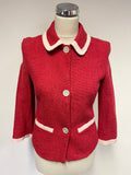 LK BENNETT RED & BLUSH TRIM COLLARED FITTED JACKET SIZE 10