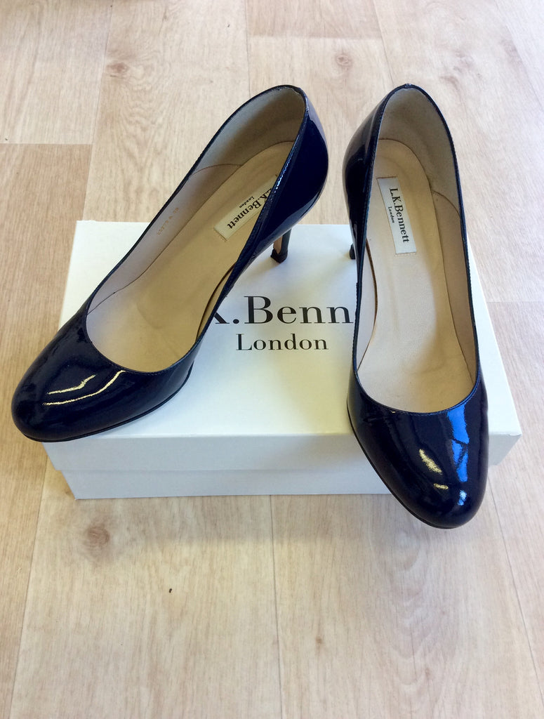LK BENNETT SABIRA NAVY PATENT LEATHER HEELS SIZE 6/39