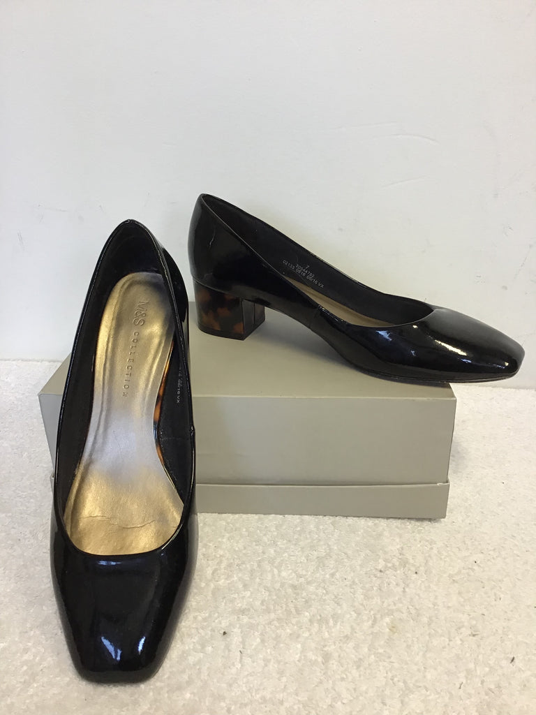 MARKS & SPENCER BLACK PATENT WITH TORTOISE SHELL HEELS SIZE 7/40