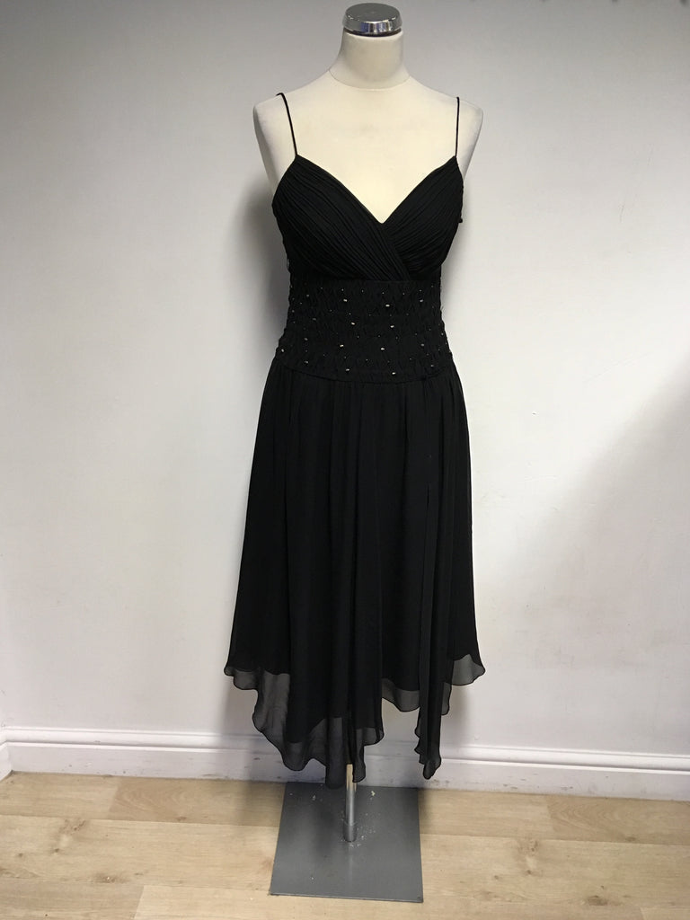 MONSOON BLACK BEADED TRIM SILK STRAPPY SPECIAL OCCASION DRESS SIZE 10
