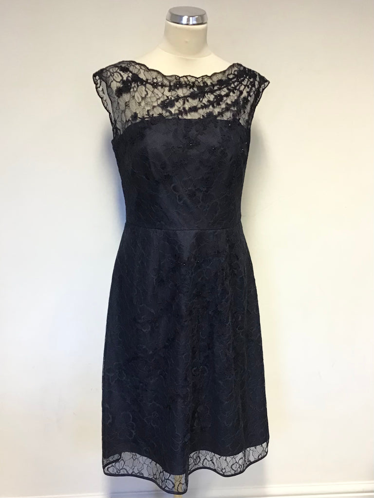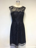 MONSOON NAVY BLUE LACE OVERLAY BEADED & SEQUIN TRIM FIT & FLARE DRESS SIZE 12