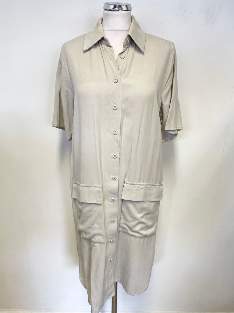 NAYA SHELL BEIGE COLLARED BUTTON UP SHORT SLEEVED SHIRT STYLE DRESS