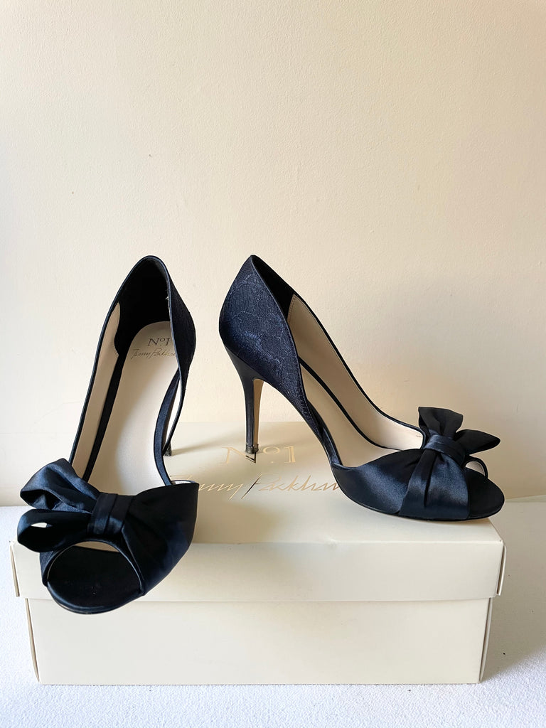 NO 1 JENNY PACKHAM PEONIE NAVY BLUE LACE BOW TRIM PEEPTOE HEELS SIZE 6/39