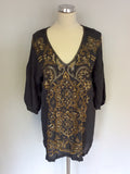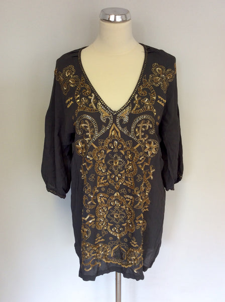 NOA NOA DARK GREY & GOLD EMBROIDERED & SEQUINED TOP SIZE S