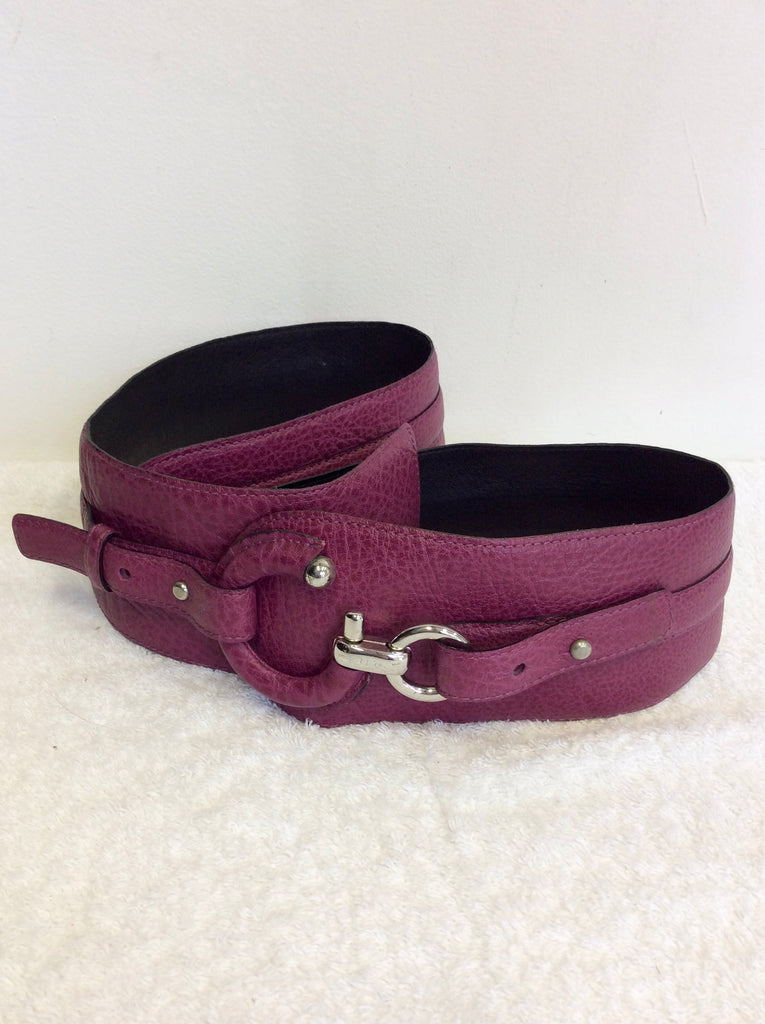 OPIKA RASPBERRY LEATHER WIDE BELT WITH SILVER RING CLASP FASTENING SIZE M/L