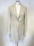 OUI NATURAL/ BEIGE 100% LINEN LONG LINE JACKET SIZE 10