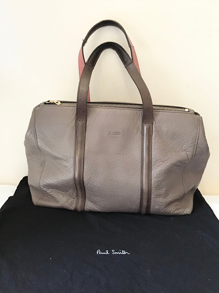 PAUL SMITH TAUPE BROWN LEATHER TOTE BAG