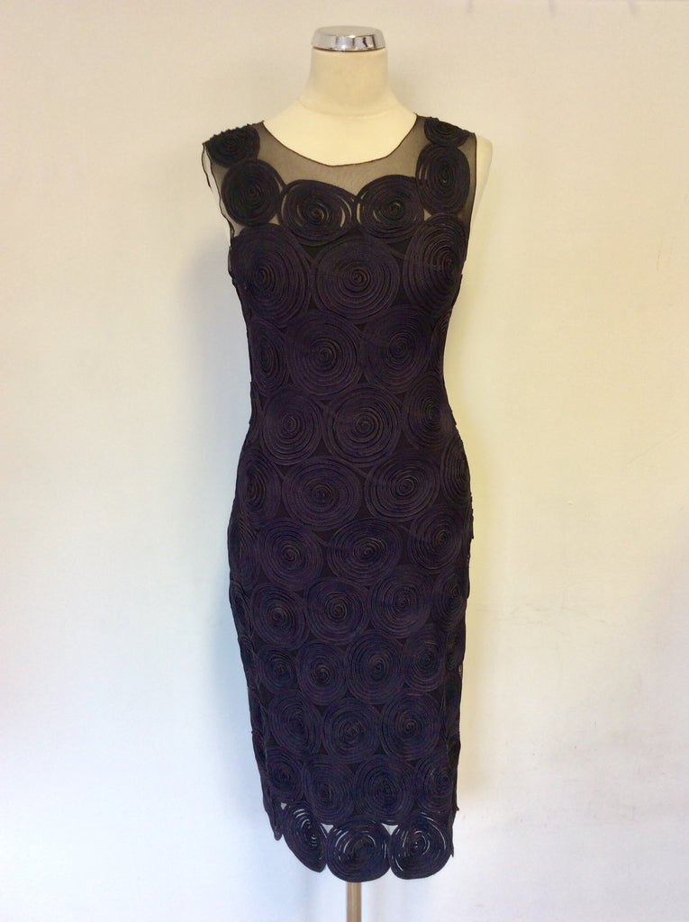 PHASE EIGHT AUBERGINE NET APPLIQUÉ OVERLAY PENCIL DRESS SIZE 10