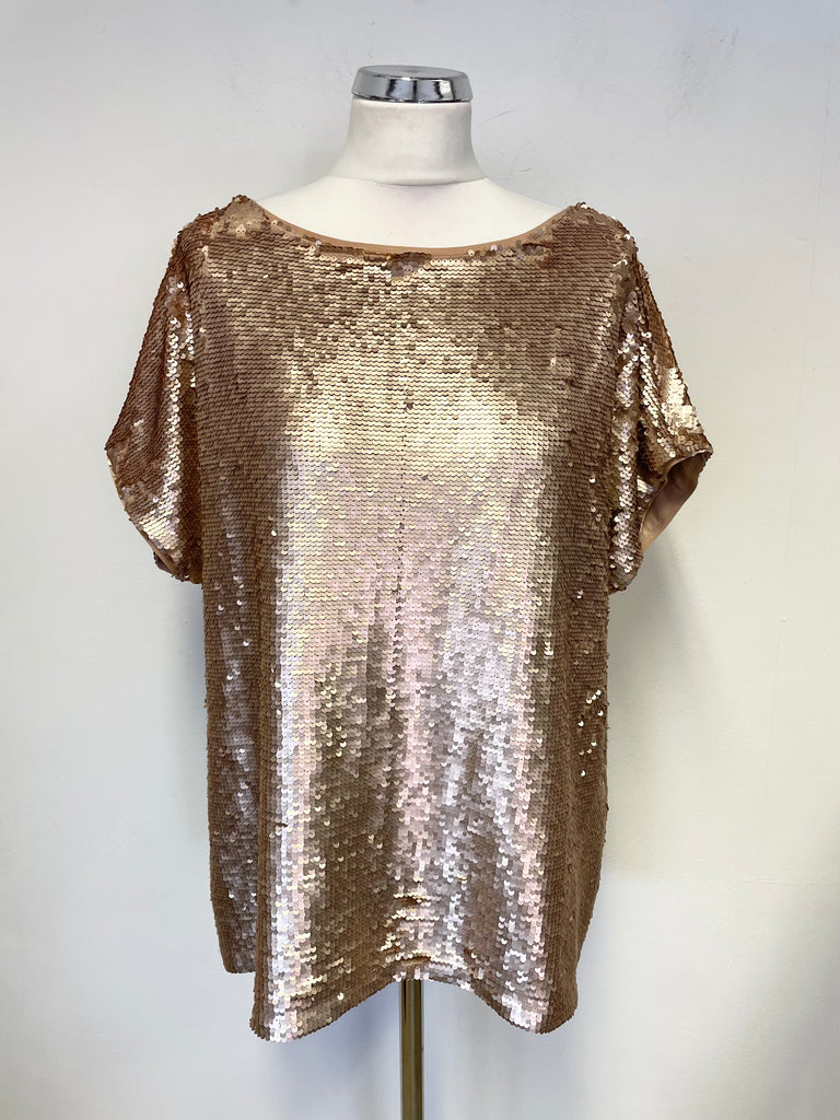 PHASE EIGHT ROSE GOLD SEQUINNED BOAT NECK TOP SIZE 18