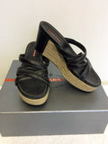 PRADA BLACK LEATHER WEDGE HEEL SLIP ON MULES SIZE 4/37