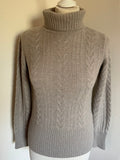 PURE COLLECTION OATMEAL BEIGE 100% CASHMERE CABLE KNIT POLO NECK JUMPER SIZE 8