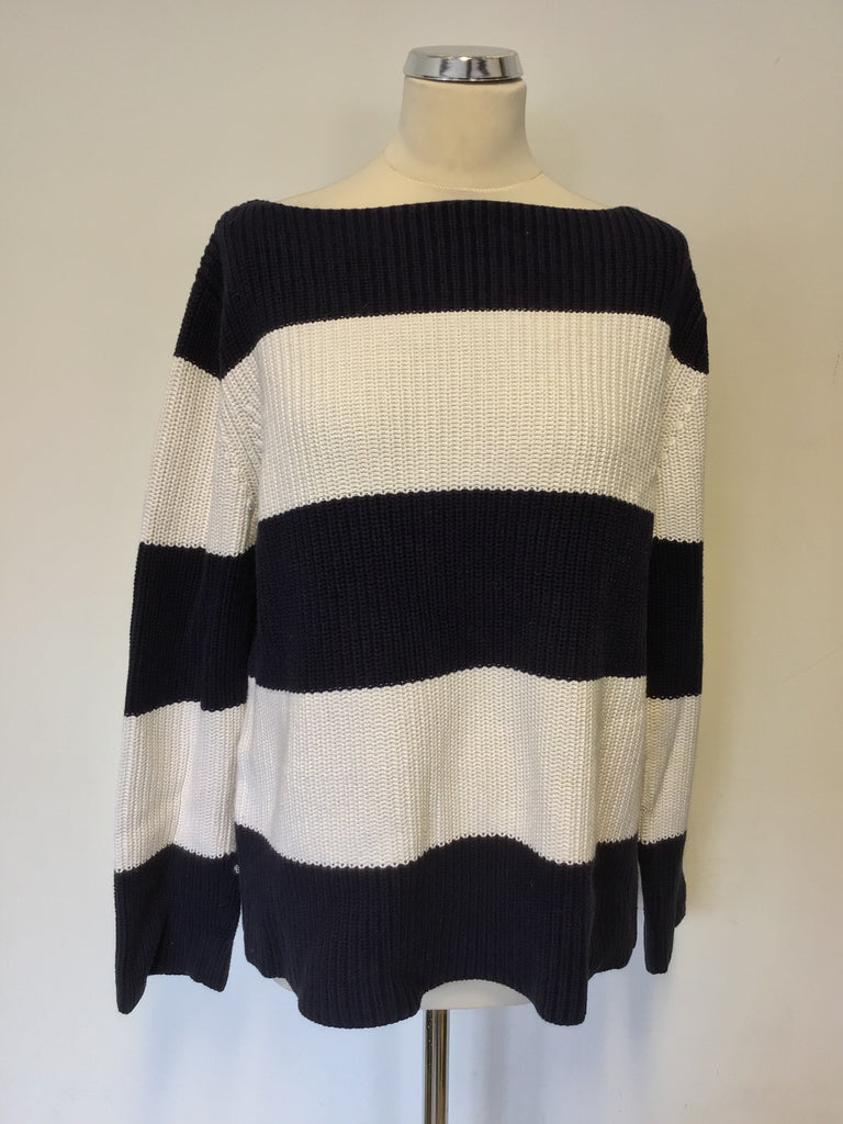 RALPH LAUREN NAVY BLUE & WHITE STRIPE COTTON JUMPER SIZE M
