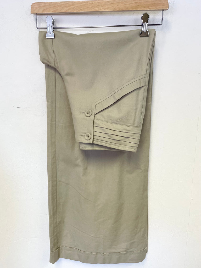 REISS BEIGE COTTON & LINEN BLEND WIDE LEG TROUSERS SIZE 8