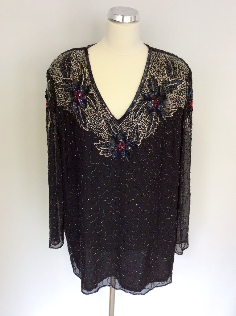 SERENADE BLACK SEQUINNED & BEADED SILK TOP SIZE 26