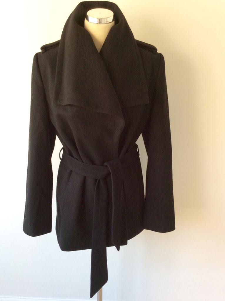 TED BAKER BLACK WOOL BLEND BELTED SHORT COAT SIZE 4 UK 12/14