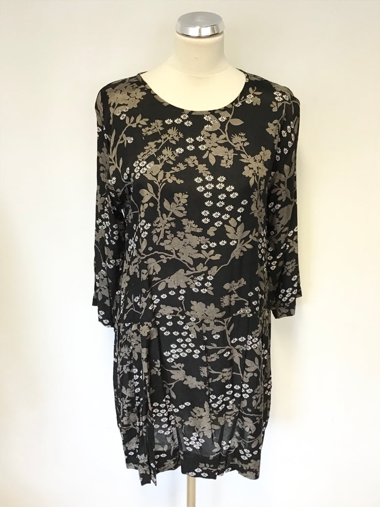THE MASAI CLOTHING COMPANY BLACK,BROWN & WHITE FLORAL PRINT DRESS