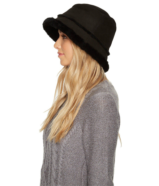 UGG BLACK SHEEPSKIN CITY BUCKET HAT