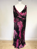 VENI INFANTINO FOR RONALD JOYCE BLACK & CERISE PINK BEADED TRIM LONG EVENING DRESS SIZE 22