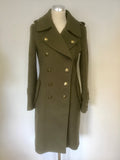 WHISTLES ARMY GREEN 100% WOOL KNEE LENGTH COAT SIZE 10