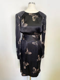 WHISTLES BLACK & PALE GOLD FLY PRINT SILK LONG SLEEVE TEA DRESS SIZE 8