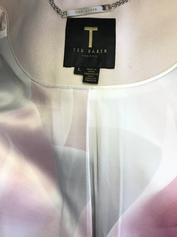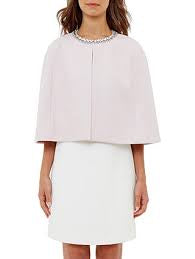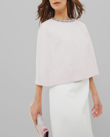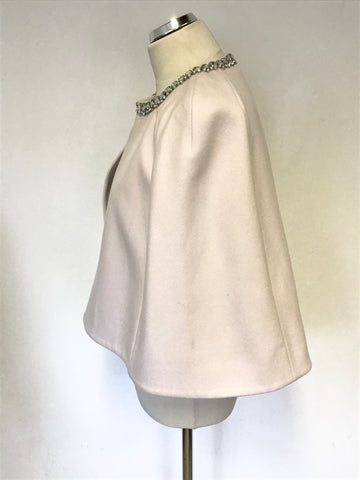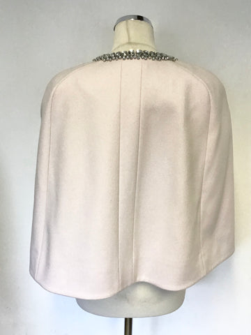 TED BAKER INDAH PALE PINK JEWEL TRIM WOOL & CASHMERE BLEND CAPE SIZE L