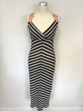TED BAKER BLACK & WHITE STRIPE STRETCH JERSEY MIDI TANK DRESS SIZE 2 UK 10
