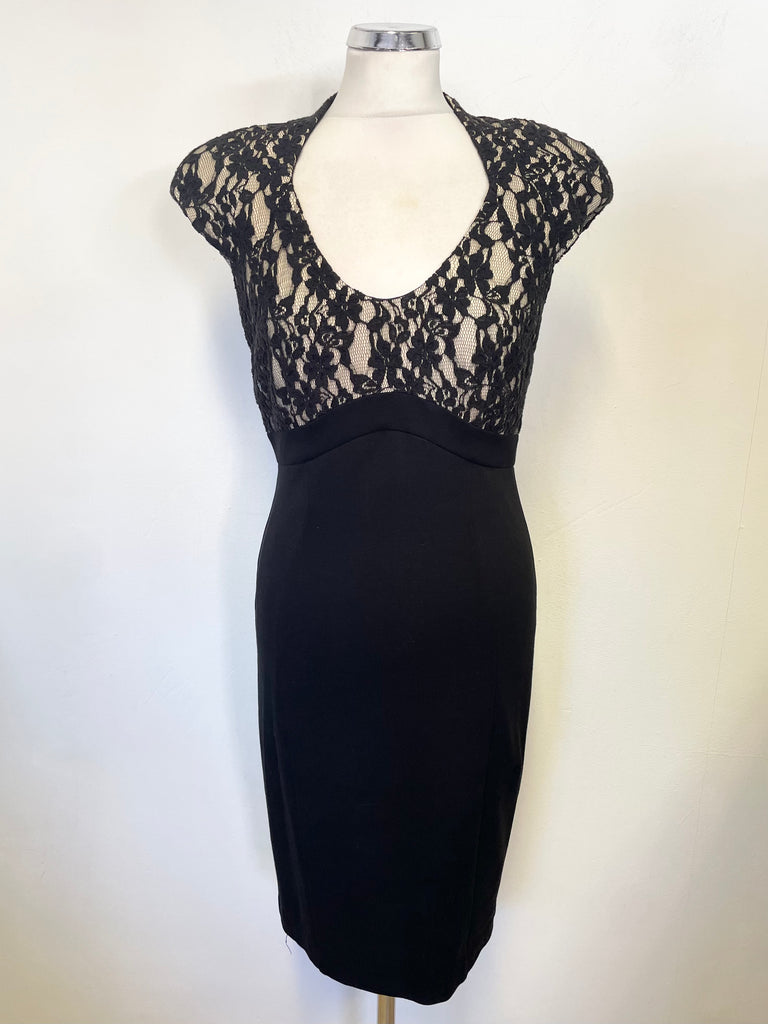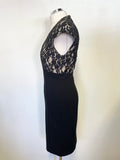 TED BAKER BLACK& CREAM LINED LACE TOP PENCIL DRESS SIZE 2 UK 10