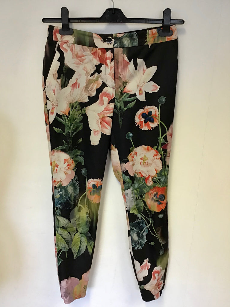 TED BAKER BLACK FLORAL BLOOM CIGARETTE PANTS SIZE 1 UK 10
