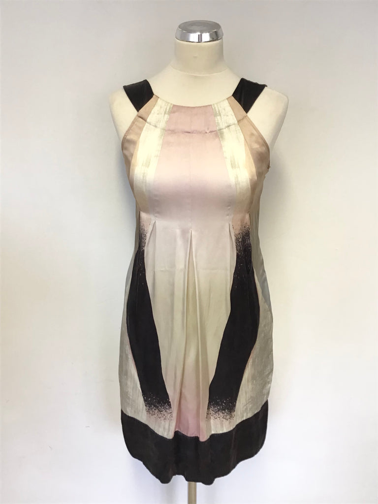 TED BAKER BLACK,PEACH,PINK & IVORY SILK SLEEVELESS SHIFT DRESS SIZE 1 UK 8/10