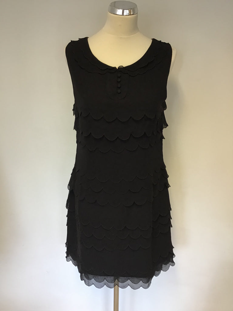 TED BAKER BLACK SILK SCALLOPED EDGE TIERED DRESS SIZE 4 UK 14