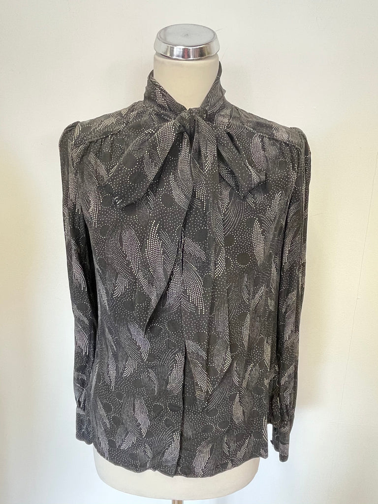 TED BAKER BLACK & WHITE PRINT SILK TIE NECK LONG SLEEVE BLOUSE SIZE 2 UK 10/12