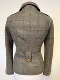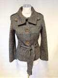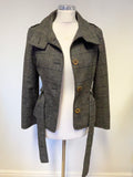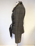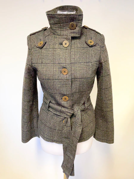 TED BAKER BROWN & BLUE CHECK TWEED WOOL MIX BELTED JACKET SIZE 2 UK 10