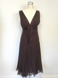 TED BAKER BURGUNDY SILK SLEEVELESS DIT & FLARE SPECIAL OCCASION DRESS SIZE 2 UK 10