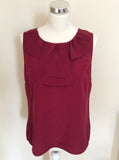 TED BAKER DEEP RED SILK PLEATED TRIM SLEEVELESS TOP SIZE 4 UK 14