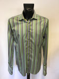 TED BAKER GREEN & PURPLE STRIPE COTTON SHIRT SIZE 17”
