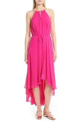 TED BAKER HARPA BRIGHT PINK ROUND CHAIN NECK LONG SPECIAL OCCASION DRESS SIZE 1 UK 8/10