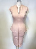 TED BAKER PINK ZIP FRONT SLEEVELESS PEPLUM TRIM PENCIL DRESS SIZE 1 UK 8/10