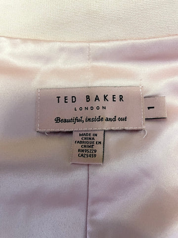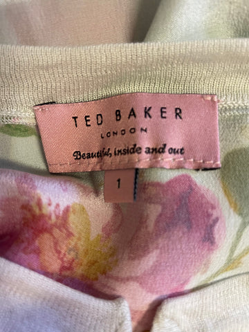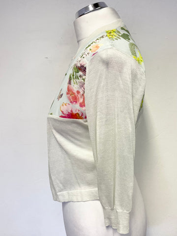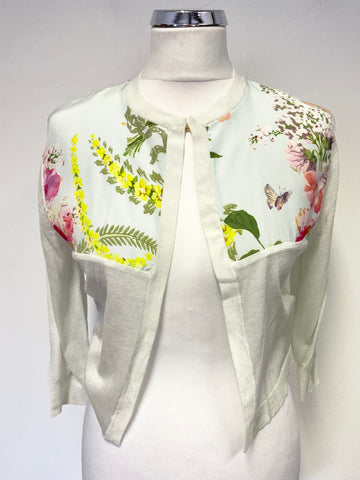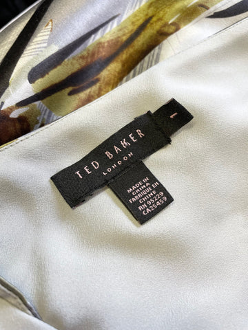 TED BAKER MEEYAH WHITE FLORAL PRINT FRILL TRIM SHOE STRING STRAP TOP SIZE 1 UK 8/10