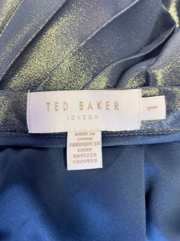 BRAND NEW TED BAKER ZAINEA BRONZE METALLIC KNIFE PLEATED SKIRT SIZE 1 UK 8