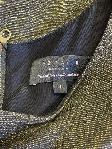 BRAND NEW TED BAKER TAMMARA BLACK METALLIC EMBROIDERED MIDI DRESS SIZE 6/8