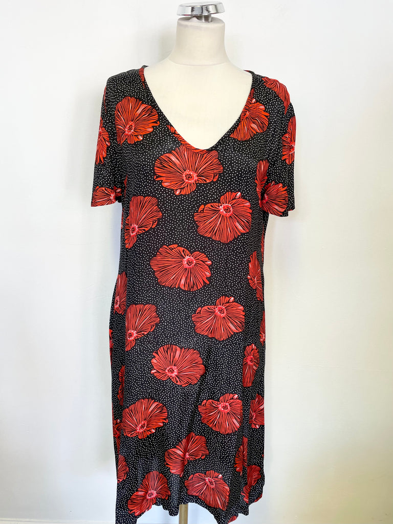 MASAI BLACK & RED FLORAL PRINT SHORT SLEEVE SHIFT DRESS SIZE M