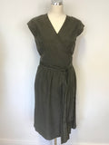 TOAST KHAKI GREEN SILK & COTTON BLEND SLEEVELESS WRAP AROUND DRESS SIZE 10