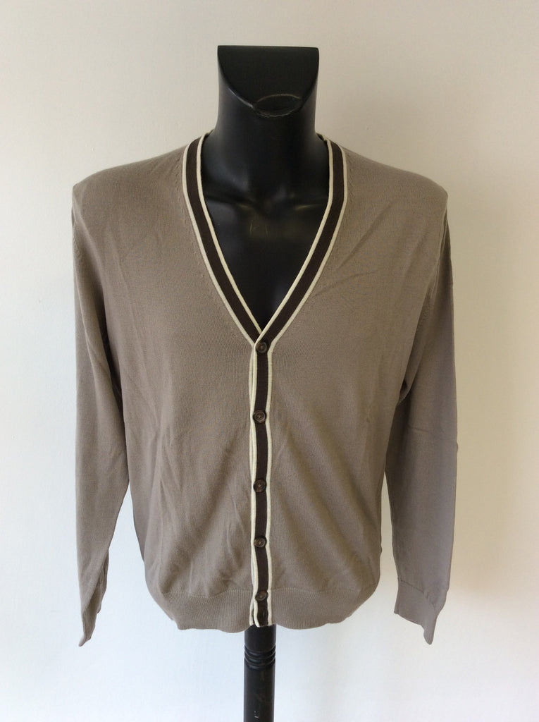 TOMMY HILFIGER FAWN & BROWN TRIM WOOL CARDIGAN SIZE L