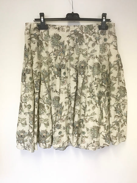 TOMMY HILFIGER IVORY PAISLEY PRINT SILK & LINEN FLIPPY SKIRT SIZE 10 UK 14