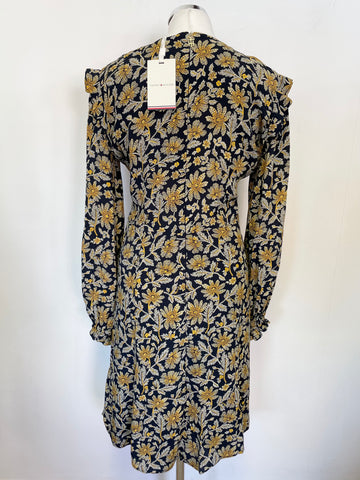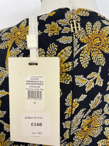 BRAND NEW TOMMY HILFIGER AMBER GLOW NAVY & ORANGE FLORAL PRINT FIT & FLARE DRESS SIZE 10