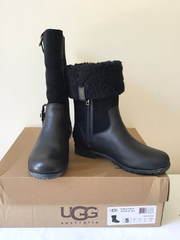 BRAND NEW UGG BELLVUE III BLACK LEATHER & SUEDE BOOTS SIZE 3.5/36