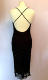 Black Beaded & Sequined Silk Strappy Cocktail Dress Size 10/12