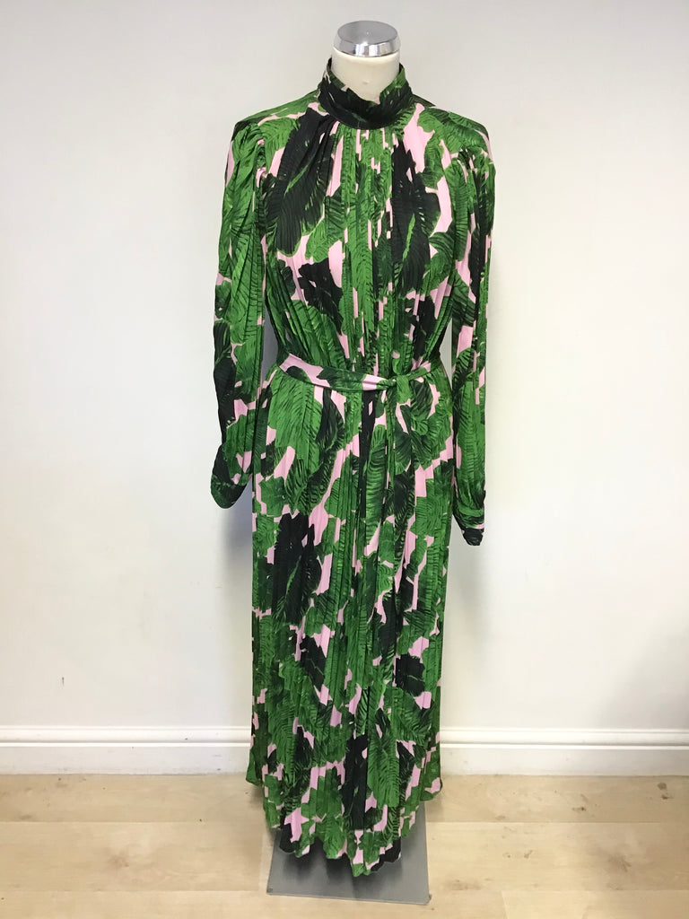 BRAND NEW UNBRANDED GREEN & PINK FLORAL PRINT LONG SLEEVE PLEATED MAXI DRESS ONE SIZE APPROX 10/12