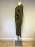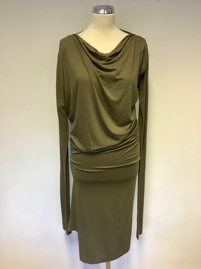 VIVIENNE WESTWOOD ANGLOMANIA KHAKI STRETCH JERSEY DRAPE DRESS SIZE S