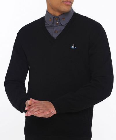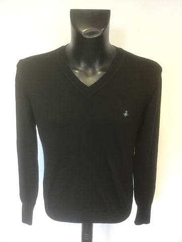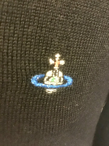 VIVIENNE WESTWOOD TESS BLACK WOOL V NECK JUMPER SIZE S